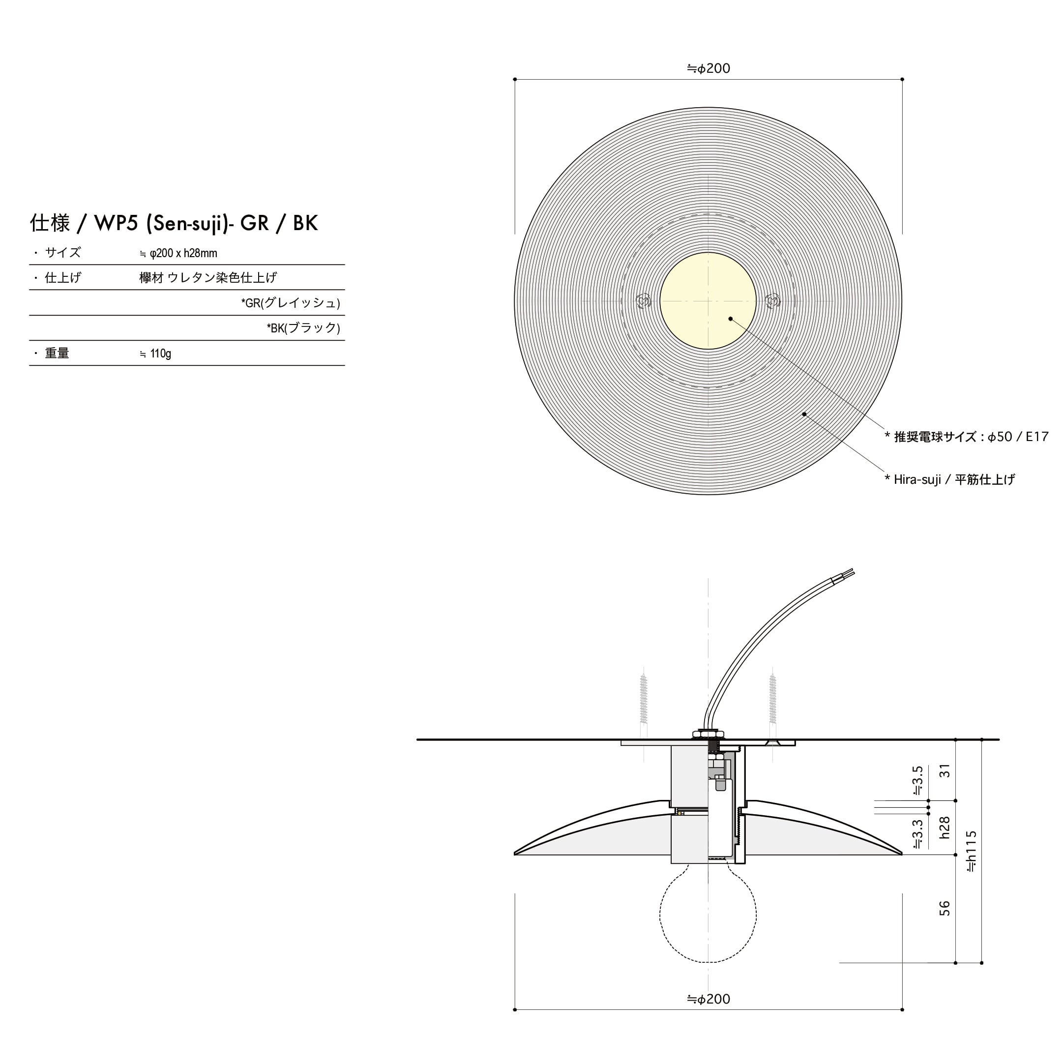推奨電球: LED電球等 (φ50mm程度)