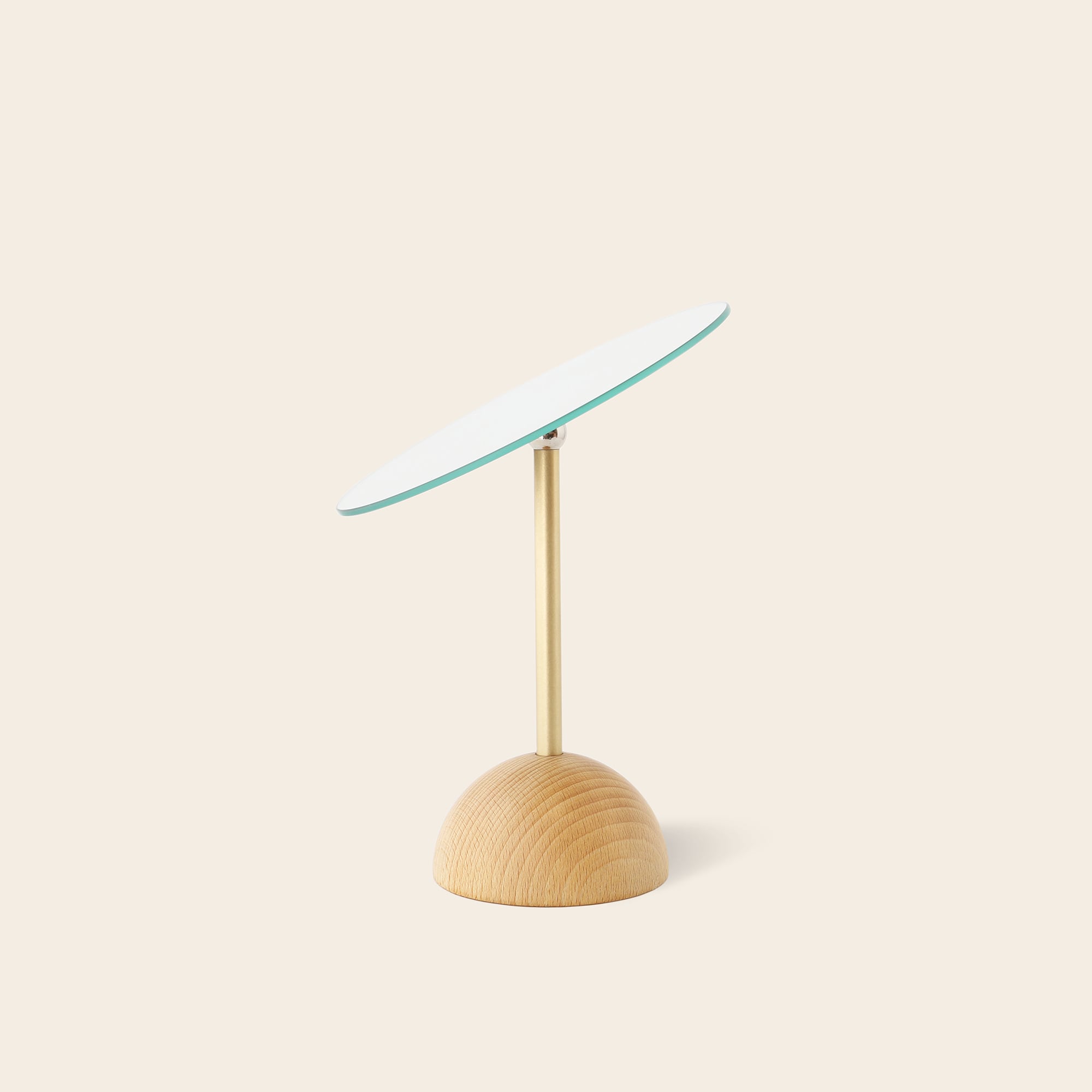 マグネットと鉄球の組み合わせで、フレキシブルな可動部を実現させたテーブルミラーです。非常にシンプルな構造ですが、前後左右へスムーズで快適な角度調節が可能です。また、ミラーはマグネットにて簡単に取り外すこともできます。
